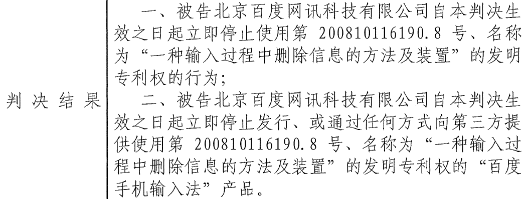 集佳代理搜狗公司处理的“一种输入过程中删除信息的方法及装置”发明专利(ZL200810116190.8)无效一案,已于近日收到复审委做出的审查决定,维持专利权全部有效。该专利历经请求人提出的三次无效宣告请求,集佳均代理搜狗公司并获得三次连续胜利!同时,日前北京知识产权法院已针对该涉案专利做出一审判决,判决百度公司立即停止侵权行为,即立即停止发行、或通过任何方式向第三方提供使用涉案专利权的“百度手机输入法产品”!