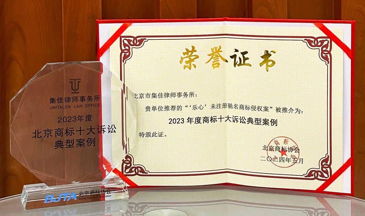 集佳代理2个案例入选北京商标协会2023年度商标十大诉讼与非诉典型案例