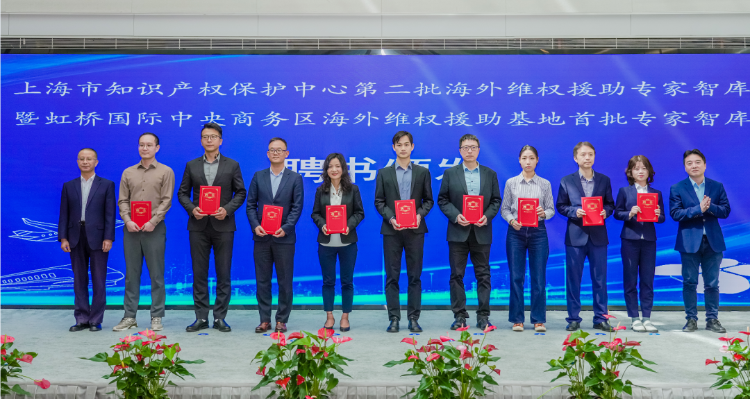 为深入贯彻长三角一体化和虹桥国际开放枢纽建设国家战略,加强虹桥国际中央商务区海外知识产权保护,提升区域知识产权营商环境,2024年5月13日,上海市知识产权局、虹桥国际中央商务区管委会举办战略合作协议签约仪式。活动上,上海市知识产权保护中心、商务区管委会公共服务处负责人为上海市知识产权保护中心第二批海外维权援助专家(上海市第二批知识产权海外纠纷应对指导专家库专家)暨虹桥国际中央商务区海外维权援助基地首批专家颁发了聘书。